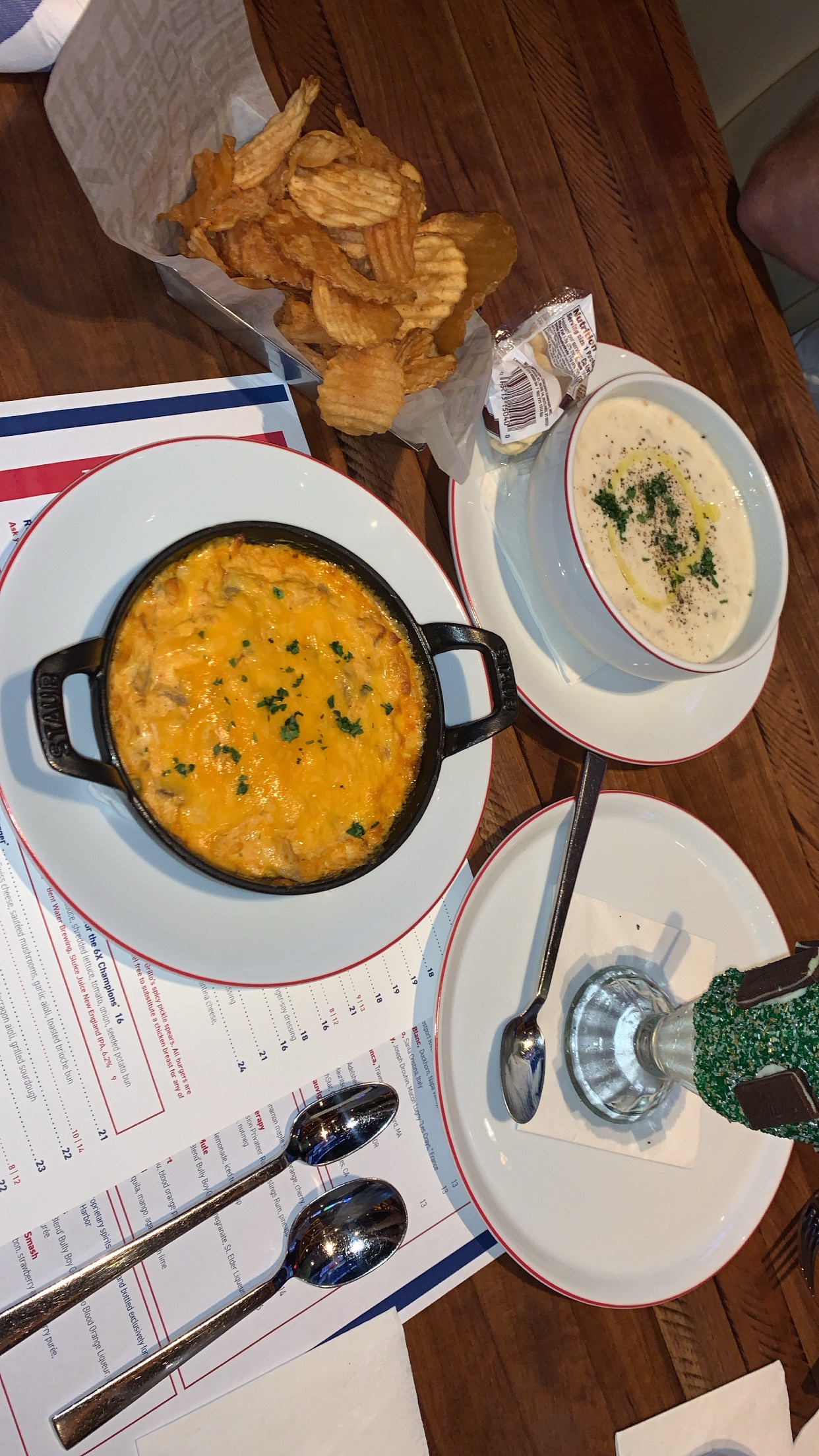 jm Curley – This is a cocktail bar and steakhouse owned and run by one of Jared’s friends. This rustic themed bar is so fun and has such a great atmosphere. Totally totally recommend. The drinks were cute, fancy, and DELICIOUS. I had an Espresso Martini, the B&T (vodka, raspberry, lemon, and elderflower foam), and the Aperol Spritz (aperol, sparkling wine, and soda water) – all were up to par. For food we had the Roasted Garlic Hummus, Carolina Golden Wings, and the Buffalo Chicken Mac (A MUST HAVE). They are open seven days a week and serve food until close. They even have a nice private Steakhouse in the back, Bogie’s Place, that they just recently added.