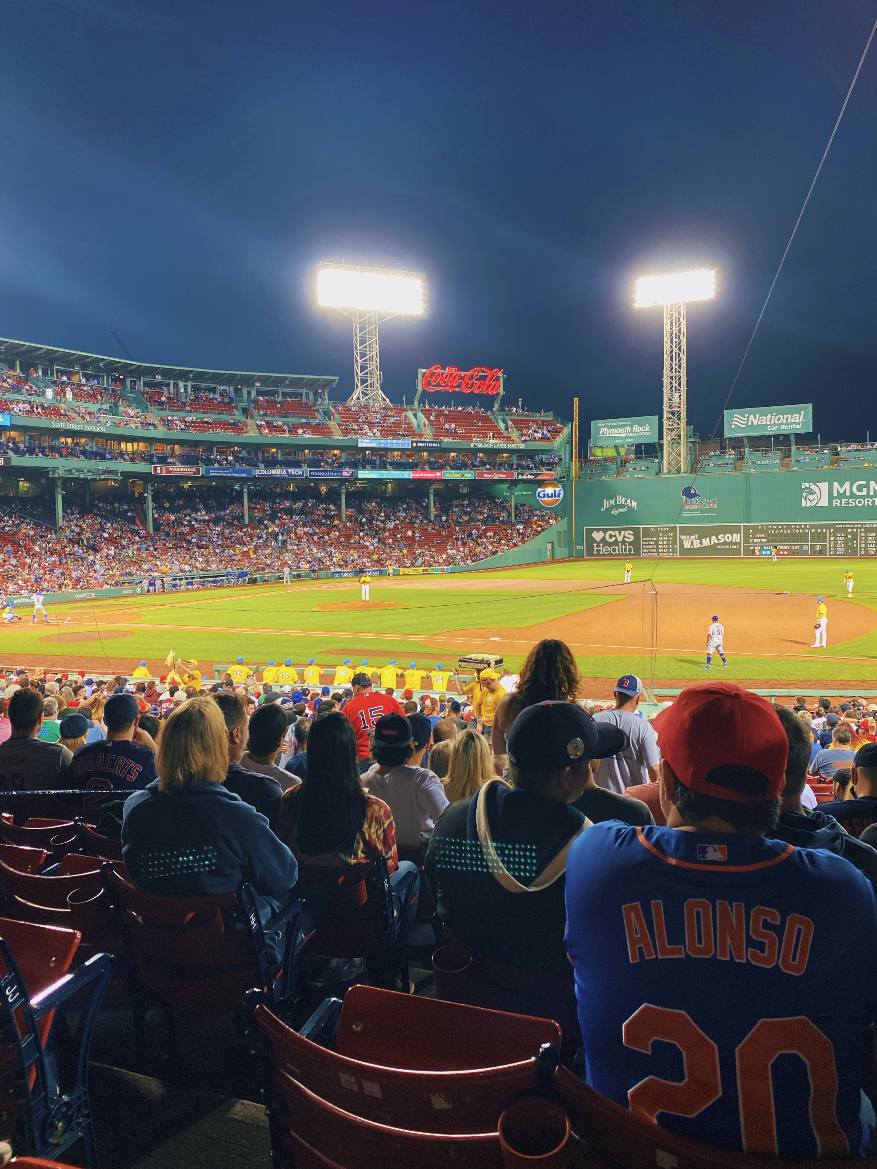 For the second game, we sat on the Green Monster and this is a bucket list item for sure. It’s nearly a 38 foot wall, left of the field, with an incredible view of the stadium. (We definitely made it on TV too!) Beware if you sit here you will definitely have to pay close attention because it’s possible you can be hit with a ball. Fun fact – this MLB stadium is the oldest ballpark to date, and if you want a good stadium snack, be sure to walk all the way to the end of the stadium to get the classic baseball cap nachos – my absolute FAVORITE.