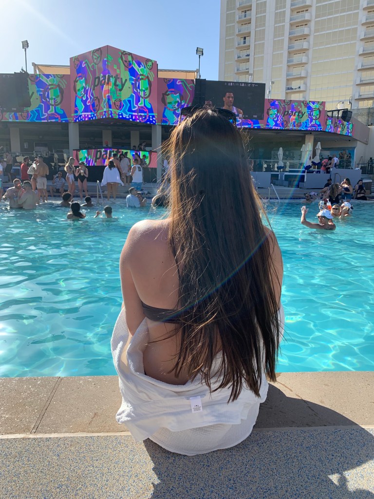 - Wet Republic Pool Party – Wet Republic is a popular pool party and dayclub located at the MGM Grand Hotel and Casino on the Las Vegas Strip. The party features several pools, multiple bars, VIP cabanas and bungalows, and a large dance floor. It’s known for hosting top DJs and celebrities, and it’s a popular destination for those looking to party and enjoy the Las Vegas sun. You can get a cabana here, and bottle service, another birthday celebration activity we did.