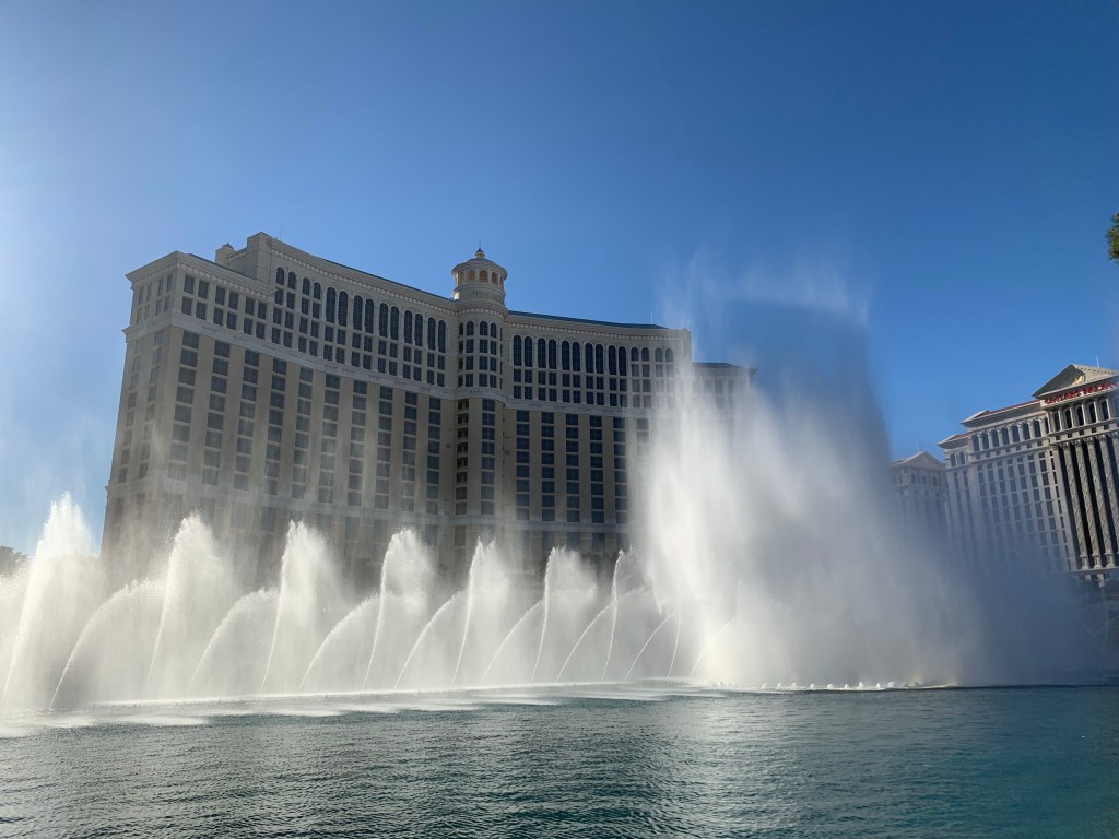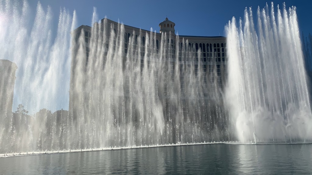 - See The Fountain Show At Bellagio – As I mentioned earlier, The Fountains of Bellagio is a famous attraction located at the Bellagio Hotel and Casino in Las Vegas. The Fountains are a series of choreographed water fountains that perform a synchronized show set to music and lights. The show takes place in a man-made lake in front of the hotel, and it is free to watch.