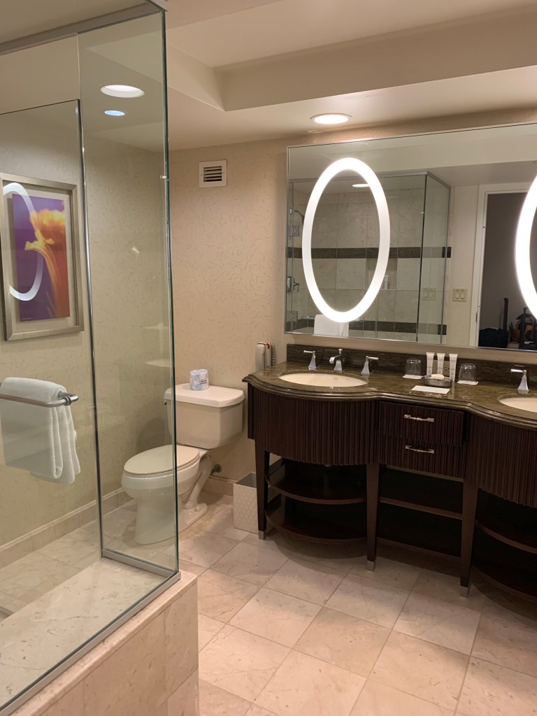 When in Vegas, we stayed at the Bellagio, located right on the strip across from the big Eiffel tower, you can’t miss it. If you haven’t already heard about this place, it is known for its iconic fountain show, which features choreographed water jets that are synced to all different kinds of music. The resort is home to several fine dining restaurants, as well as a number of casual dining options. It also has a spa, salon, and fitness center, as well as a pool complex with private cabanas. There is a casino right on the first floor along with the stunning features of a beautiful botanical garden that is home to thousands of exotic plants, flowers, and trees, all designed and arranged in beautiful displays that change with the seasons. We had a great experience here, with excellent service, and would definitely stay here again in the future.