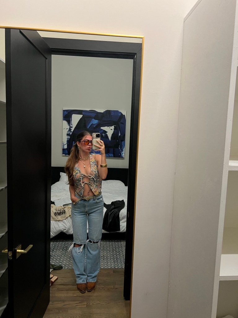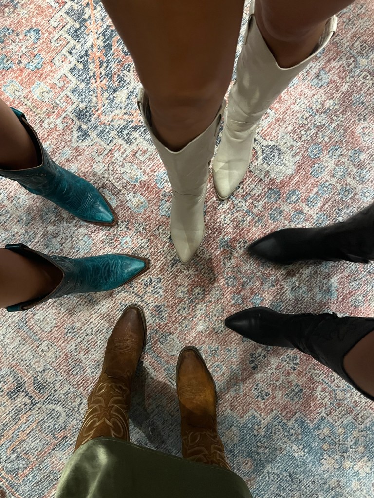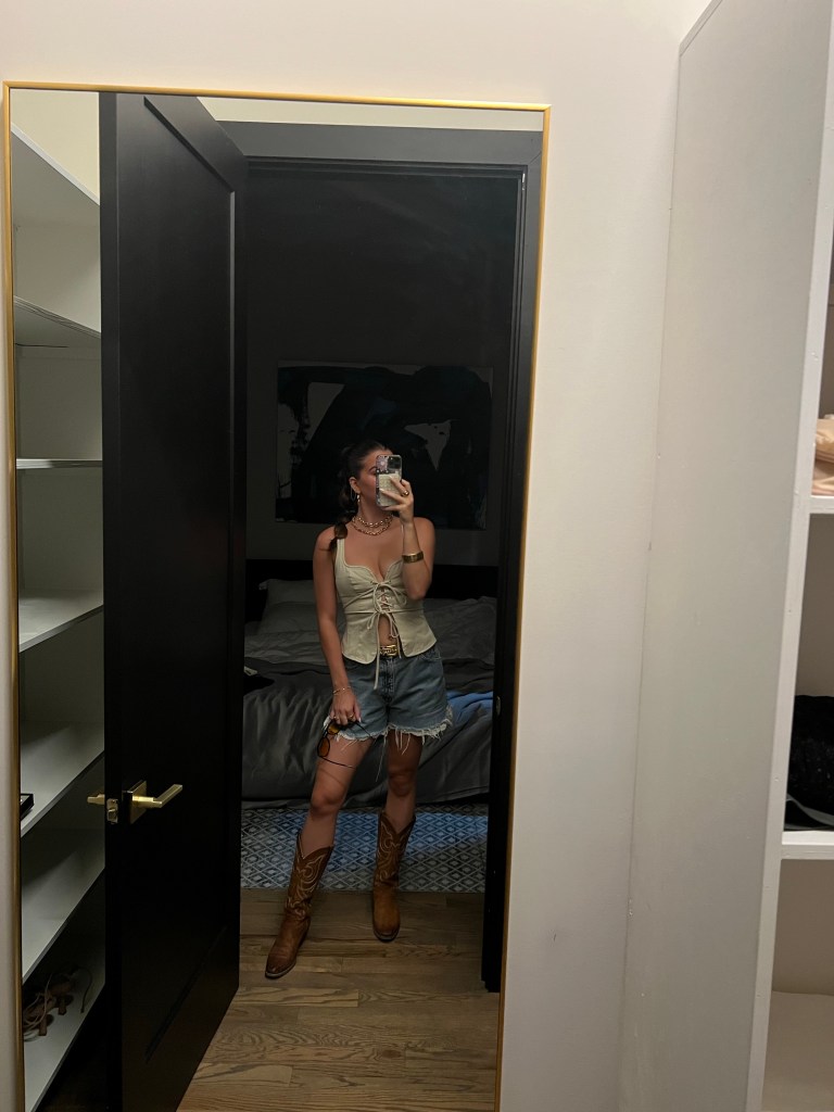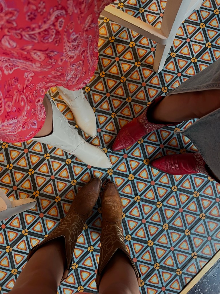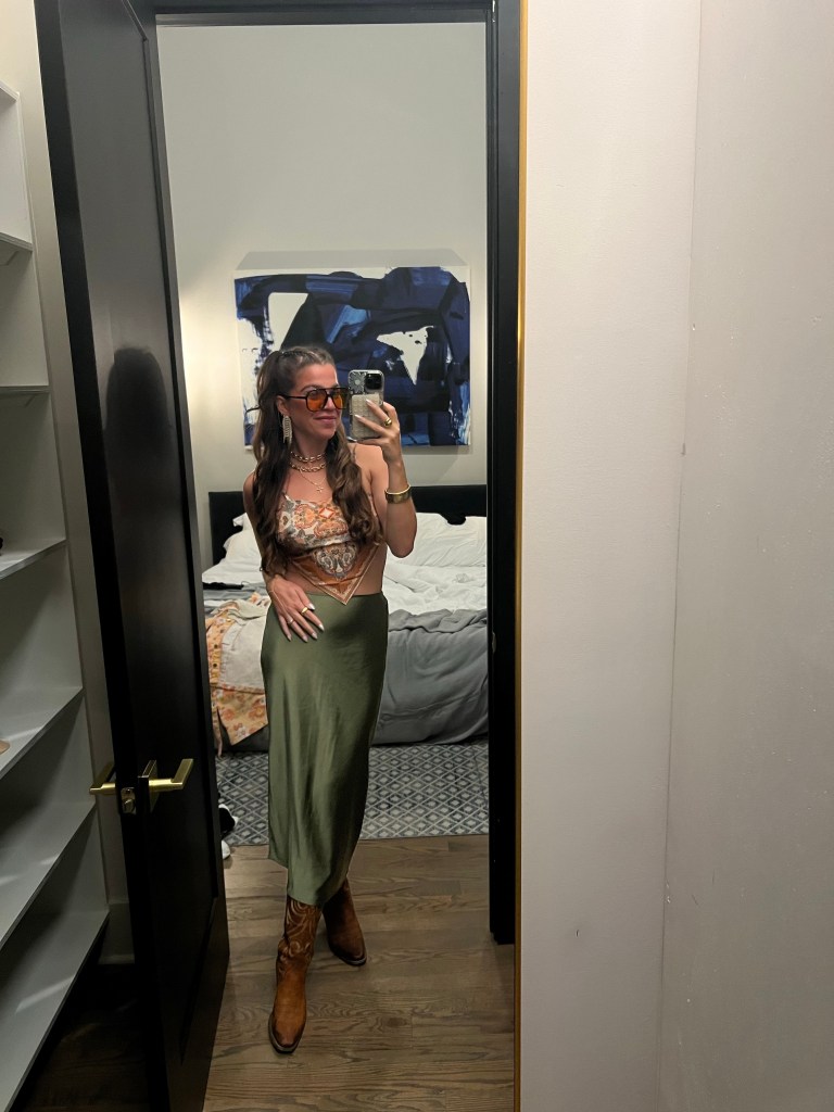 - A breezy mini dress with cowboy boots — easy, stylish, and made for that “oh just casually chic” vibe. Bonus points for cute sunnies and lotssss of layered gold jewelry (obviously from @taylorsouldesigns).