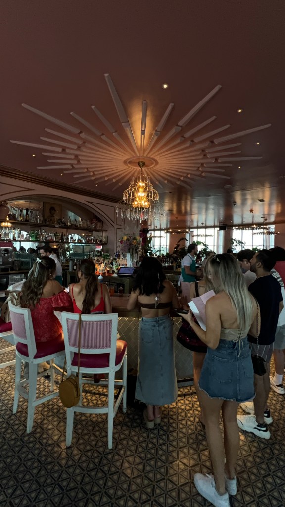 - This spot feels upscale without being stuffy—think classy cocktails, moody lighting, and a sleek open-air rooftop. It’s the kind of place where you can dress up a bit and not feel out of place. We loved the vibe here for daytime drinks and a more elevated break from the Broadway madness.
