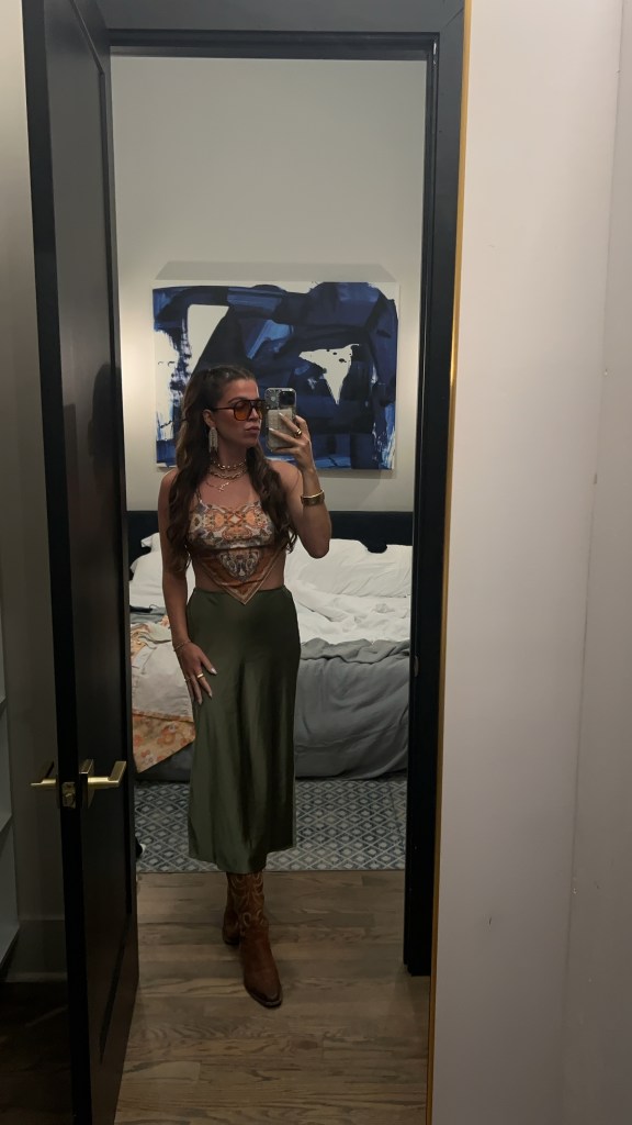 Not sure what to pack for your Nashville getaway? I’ve got you. From cute daytime looks to rooftop-ready outfits, here’s everything I wore on our trip—and what I’d recommend bringing to feel comfy, confident, and totally on-theme. Think boots, layers, and a little sparkle.