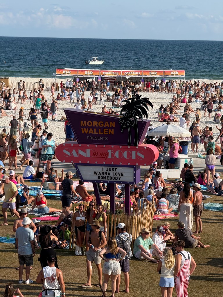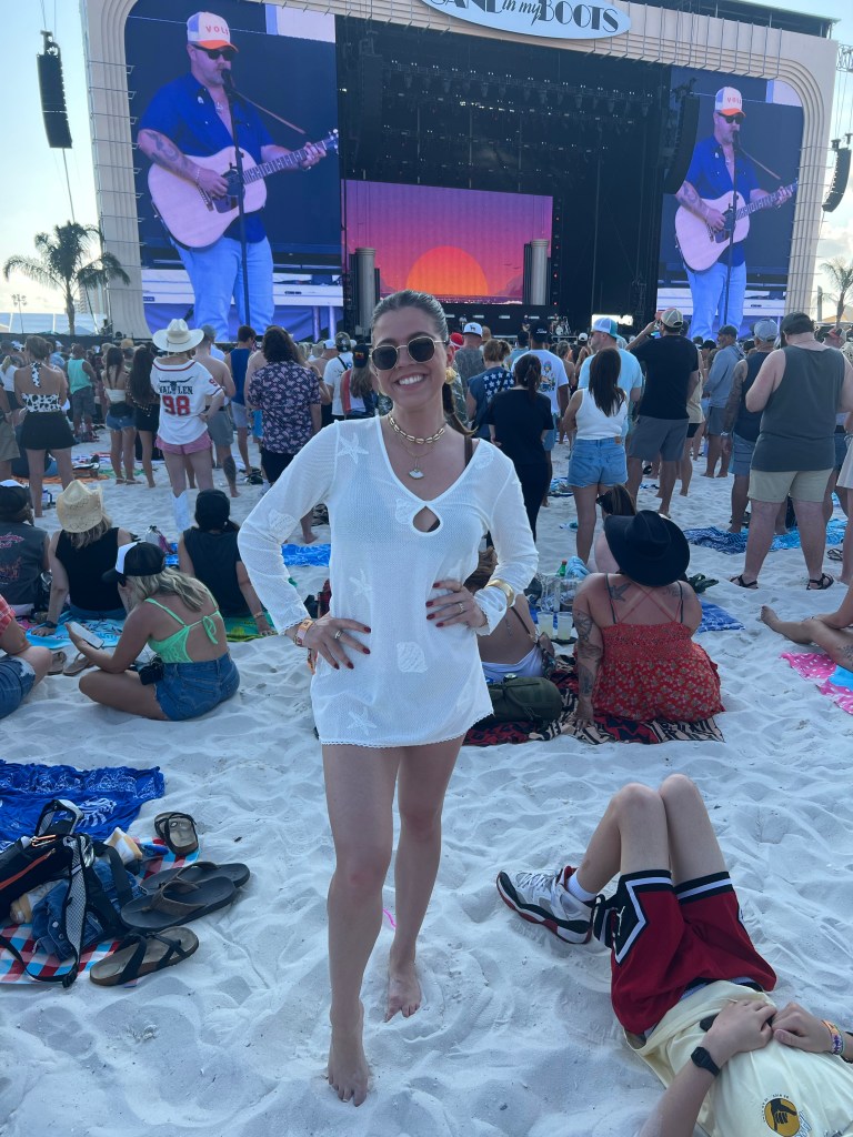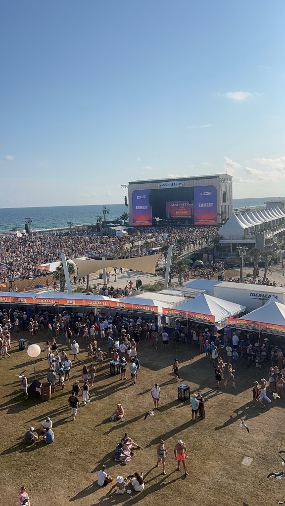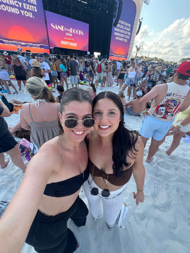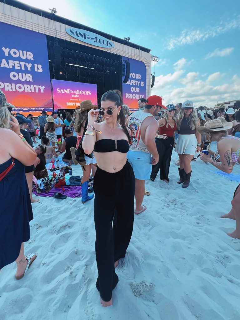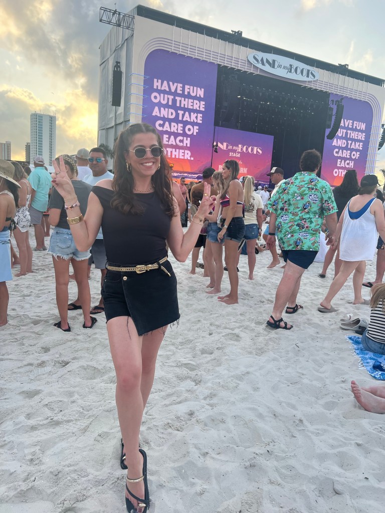 The festival took place in Gulf Shores, Alabama, a laid-back beach town right on the coast. If you’ve never been, picture soft white sand, warm Gulf waters, and a community built around summer vibes and Southern hospitality. It was the ideal backdrop for a country-meets-pop music festival. The weather was perfect, the vibes were perfect, I low-key felt like I was on an episode of BayWatch… if there were a music festival here everyday, I would highly consider moving for sure.