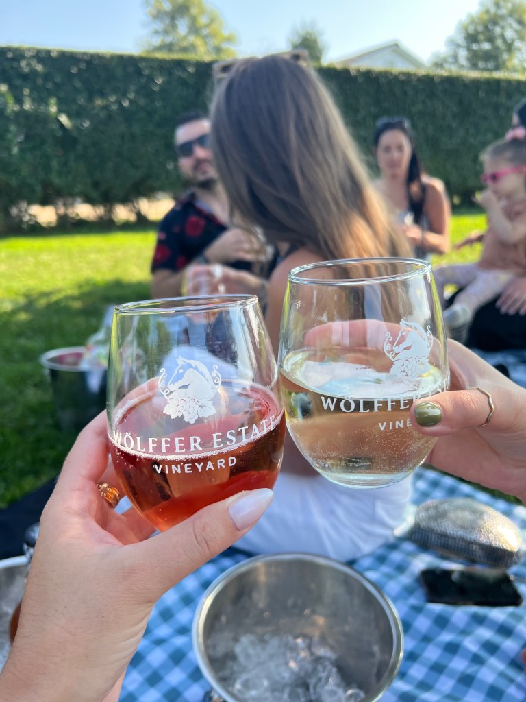 Wölffer Estate Vineyard was a full main character moment. From the second we pulled up, it felt like we stepped into a movie. Rows of vines, gorgeous architecture, and that dreamy golden-hour lighting? Yeah, it delivered. We sat outside, sipped on rosé (or mocktails if you’re like me!), snacked on cheese boards, and just talked about life. It was peaceful, pretty, and everything you’d hope for from a Hamptons vineyard visit.
